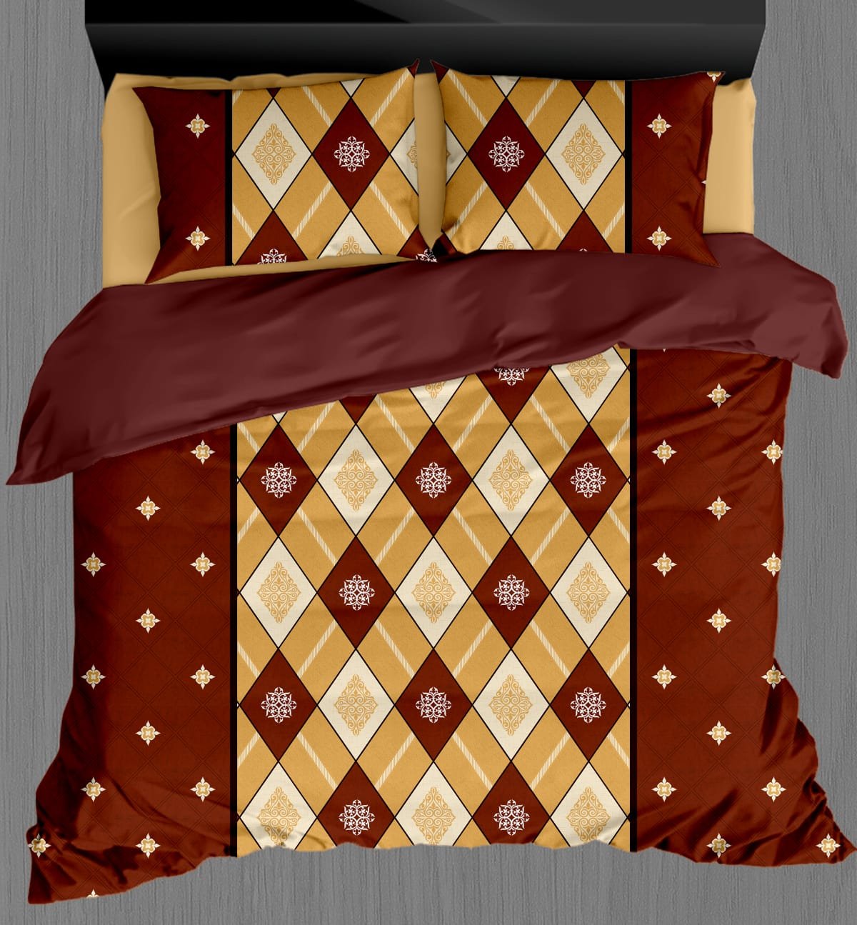 Premium Cotton Bedsheet Set – Golden & Maroon Diamond Design