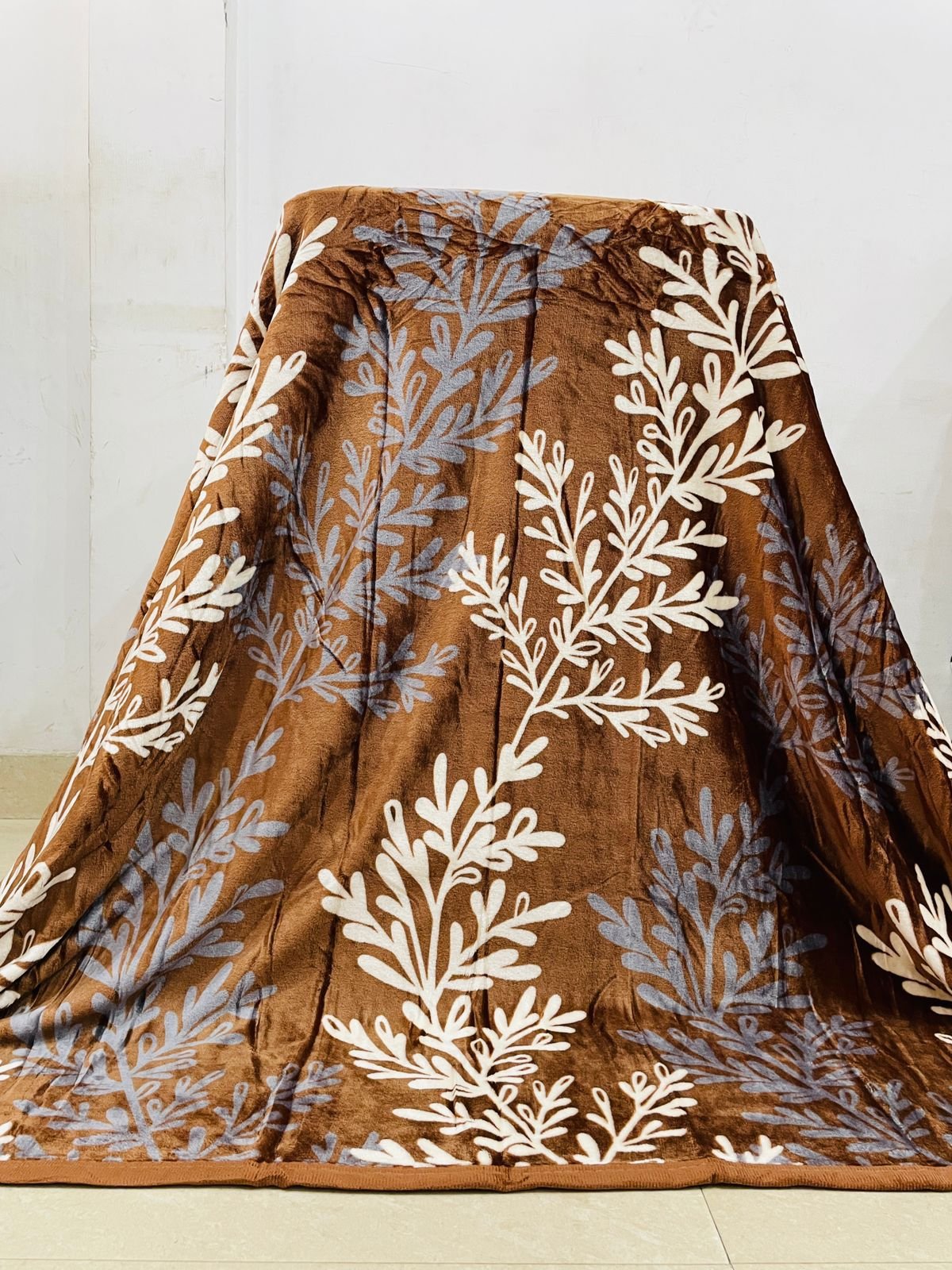 Premium Soft Fleece Blanket – Brown Leaf Design